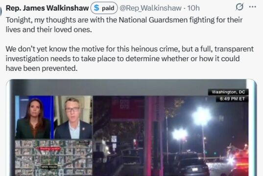 Video: Rep. James Walkinshaw (D-VA11) on “Terrible, Horrific” Shooting of Two National Guard Members in DC, Says “it’s incumbent...