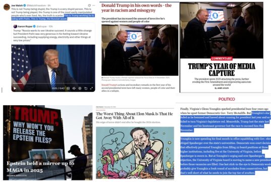 Monday News: Trump “working for & siding with Putin”; “Trump’s Year of Media Capture”; Trump’s “year in racism and...