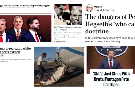 Sunday News: “Trump’s foreign policy vision: Make Europe white again”; “The Trump Administration’s Chaos in the Caribbean”;”SNL”‘s “Brutal Pentagon...