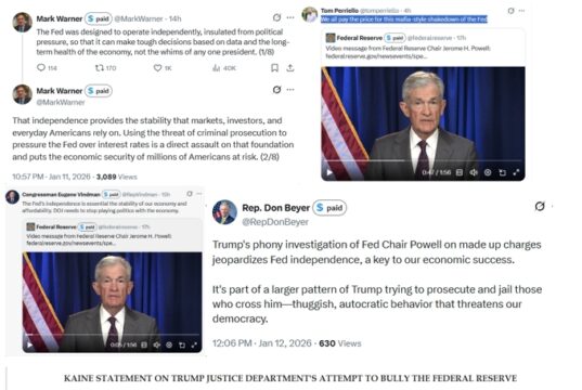 Virginia Democratic Members of Congress Rip Trump’s “mafia-style shakedown of the Fed,” “phony investigation of Fed Chair Powell on...