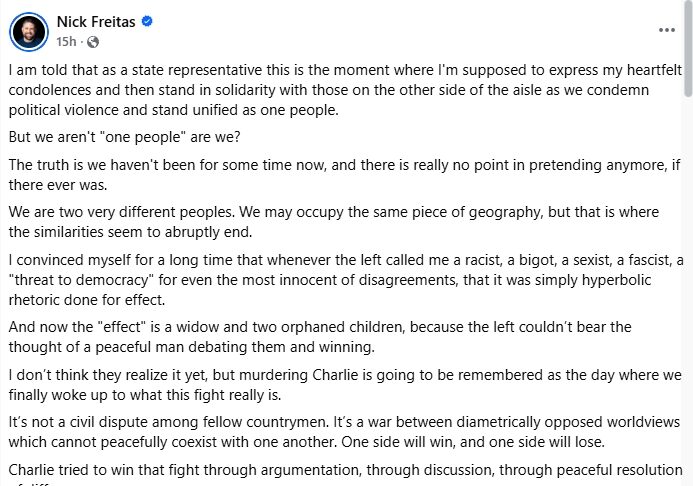 After VA Del. Nick Freitas (R) Claims “the other side murdered...