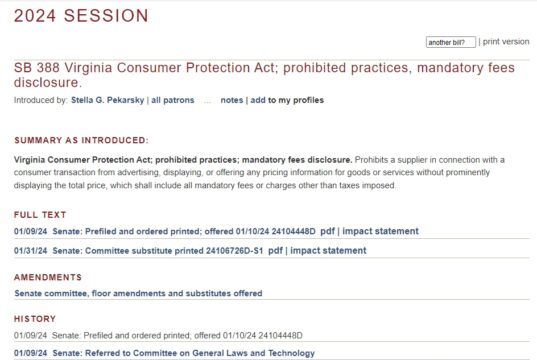 Bill to Eliminate Hidden Fees Secures Strong Bipartisan Victory on VA State Senate Floor