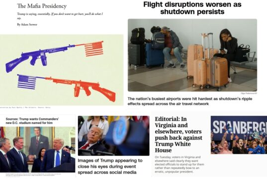 Sunday News: “The Mafia Presidency”; “Flight disruptions worsen as shutdown persists”; “Trump wants Commanders’ new D.C. stadium named for...