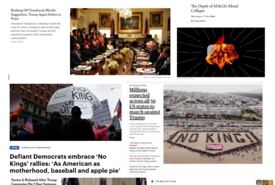 Saturday News: “Backing Off Tomahawk Suggestion, Trump Again Defers to Putin”; No Kings “As American as motherhood, baseball and...