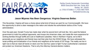 Fairfax County Democrats: “Jason Miyares Has Been Dangerous. Virginia Deserves Better.”