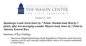 Wason Center Final Poll of the 2025 VA Elections: Spanberger +7...