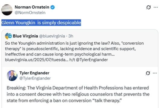 “Attorney General [Jason Miyares] is a coward who refuses to defend our state’s laws [against so-called ‘conversion therapy’] that...
