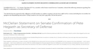 Sen. Tim Kaine on Hegseth Confirmation: “Trump wanted to see if...