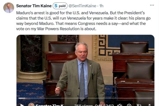 Video: Prior to US Senate Voting 52-47 to Pass His War Powers Resolution...