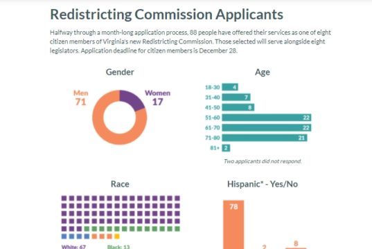 Halfway Through Month-Long Process, Virginians Applying to Redistricting Commission Skew Old, Male, White, Wealthy