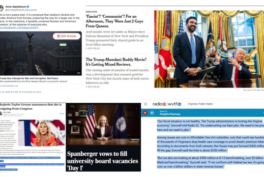 Saturday News: “Trump Has a Recipe for War and Corruption, Not Peace”; “Trump and Mamdani’s White House Lovefest Leaves...