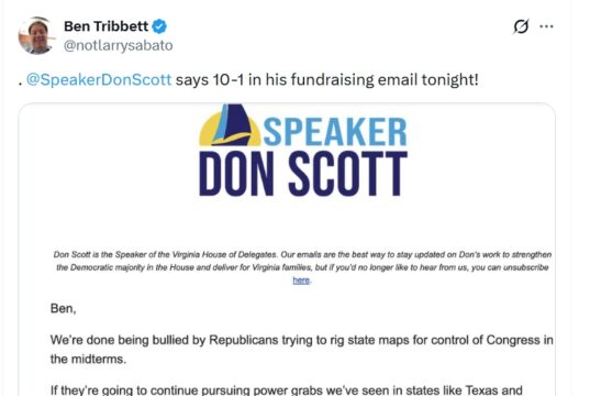 After Right-Wing SCOTUS Gerrymandering Decision, Virginia Dems Declare “Full steam ahead” in Virginia (e.g., Speaker Scott says “We didn’t...