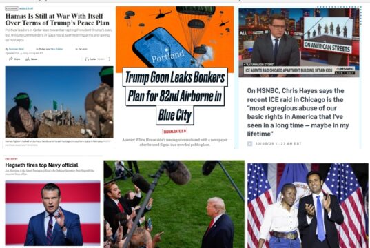 Saturday News: “Hamas Is Still at War With Itself Over Terms of Trump’s Peace Plan”; “Trump Goon Leaks Bonkers...