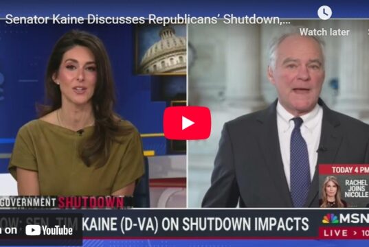 Video: Sen. Tim Kaine Says “there’s no reason for [the shutdown] to drag on,” “we could solve it in...