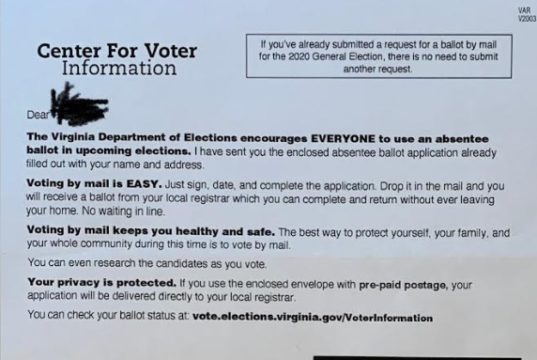 10s of 1000s of Virginia Voters Receive Absentee Ballot Application with Wrong Destination Address [UPDATED]