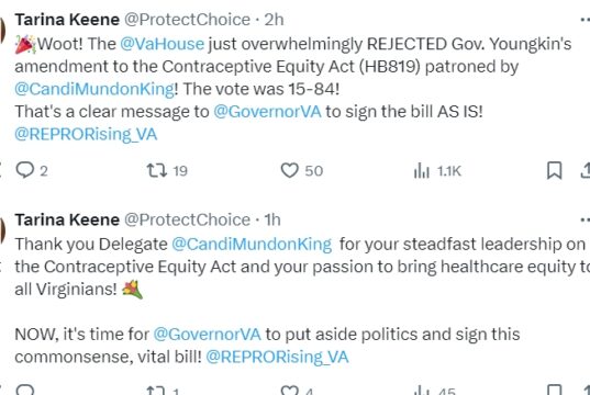 Virginia General Assembly Rejects Governor Youngkin’s “Ethical” Exemption Amendment to the Contraceptive Equity Act