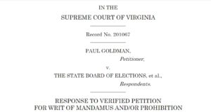 Paul Goldman Writes VA Election Commissioner, Argues Redistricting Referendum Unconstitutional