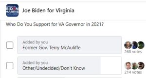 Polls of 13.1k-Member “Joe Biden for Virginia” FB Group: Terry McAuliffe...
