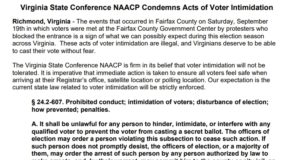 Virginia NAACP: “These acts of voter intimidation are illegal, and Virginians...