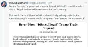 Rep. Don Beyer (D-VA08) Blasts “Idiotic, Illegal” Trump Trade Proposal
