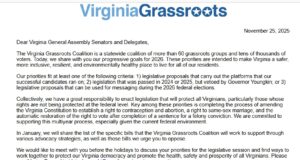 2026 Virginia Grassroots Coalition Legislative Priorities: Campaign Finance Reform, Climate/Clean Energy,...