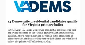 14 Democratic Presidential Candidates Qualify for Virginia Primary Ballot