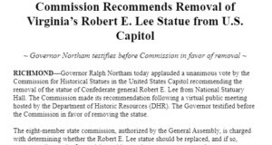 Commission Recommends Removal of Virginia’s Robert E. Lee Statue from U.S....