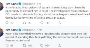 Sen. Tim Kaine Rips Trump for “patrolling the internet for weirdo...