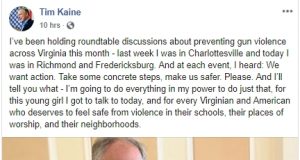 Video: Sen. Tim Kaine Holds Gun Violence Prevention Roundtables, Says “It’s...