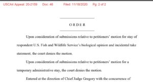 U.S. Court of Appeals Denies “Stay” of Fish & Wildlife Service’s...