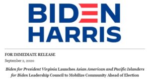 Biden for President Virginia Launches Asian American and Pacific Islanders for Biden Leadership Council...