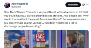 Video: Sen. Mark Warner Warns of “ICE patrols around polling stations”...
