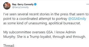 Rep. Gerry Connolly (D-VA11): @GSAEmily “may be a federal employee, but...