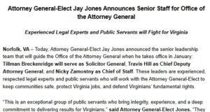 Virginia Attorney General Jay Jones Announces Day One Actions to Keep...