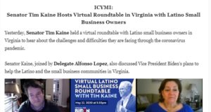 Senator Tim Kaine Hosts Virtual Roundtable in Virginia with Latino Small...