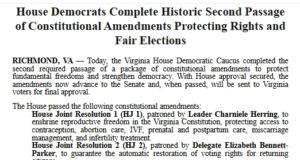 Video, Statement: VA House Democrats Complete Historic Second Passage of Constitutional...