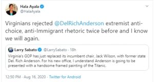 More On the New, Hard-Right VA GOP Chair: “*Former* @DelRichAnderson is...