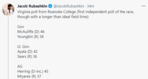 Roanoke College Poll Has McAuliffe +7, Ayala +5, Herring +10, But…Take...