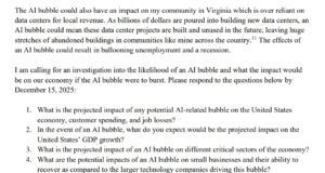 Rep. Suhas Subramanyam (D-VA10) Calls for “investigation into the likelihood of...