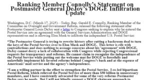 Rep. Gerry Connolly (D-VA11): “The Postmaster General is trying to rewrite...
